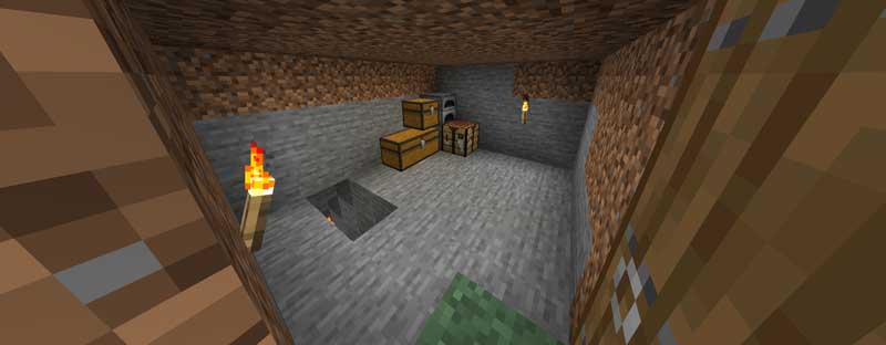 最初は小さな部屋でもまわりを掘れば簡単に大きくなります。また、地下への入り口を作ればブランチマイニングもすぐに行けますよ。