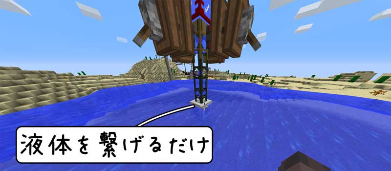 上の画像では、水門の上からタンクに入っている液体を、下にある水門に繋げています。ただ、水門に液体を流すこむだけで、その周囲にその液体が設置される感じです。