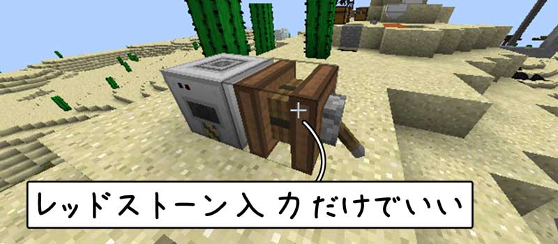逆に考えると、レッドストーン入力だけで動かすことができる唯一のエンジンなので、燃料が必要ありません。半永久的に動かし続けられ、燃料の補充なども必要なくなります。