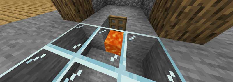 画像のように地面に溶岩を埋めてあるだけの単純な作りですが、実用的なゴミ箱になります。落ちないように扉を付けておきましょう。