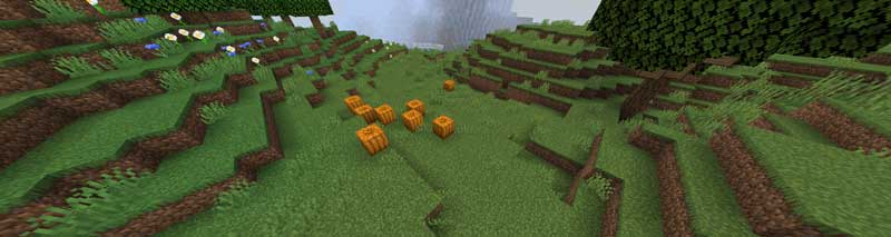 カボチャ本体を探すのに目印はありません。取り敢えず草原や山岳・白樺バイオームなどを探してみましょう。あとは運が良かったら見つけられます。