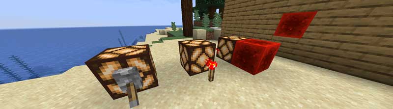 レッドストーンランプはレッドストーン動力がないと光りません。例えば、上の画像のように「レッドストーンブロック」を使ったり「レバー」を使って光らせることができます。
