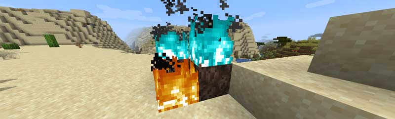 普通のブロックでは燃やすと赤く燃えるのですが、ソウルサンドは青く燃えます。通常世界でもネザーでも青く燃えるので、なにか建築に使えそうですね。