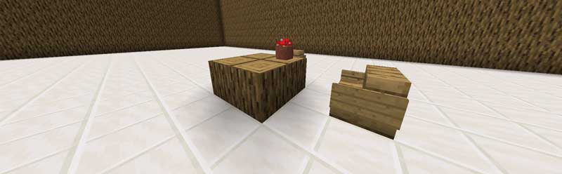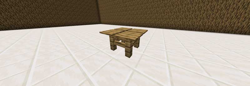 上の画像の場合「木材1個」と「階段8個」で作りました。このテーブルの上にカーペットを置いても良い感じになると思います。