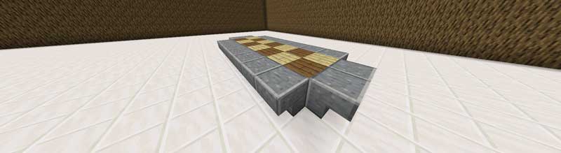 2色の木材を交互に設置することで、ファンタジーっぽい感じになります。また回りを石系の階段にすることで、木材を引き立てるアクセントになります。