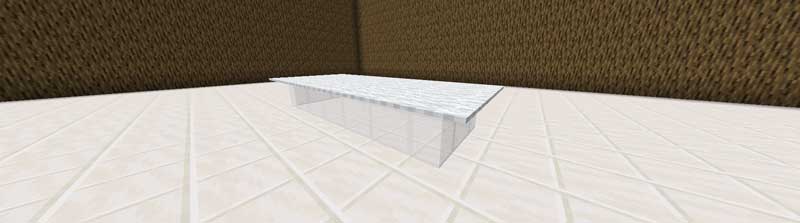 テーブルの脚は板ガラスでも作ることができます。うえの画像の場合、白色の板ガラスを置いたうえに白色のカーペットを置いてあります。