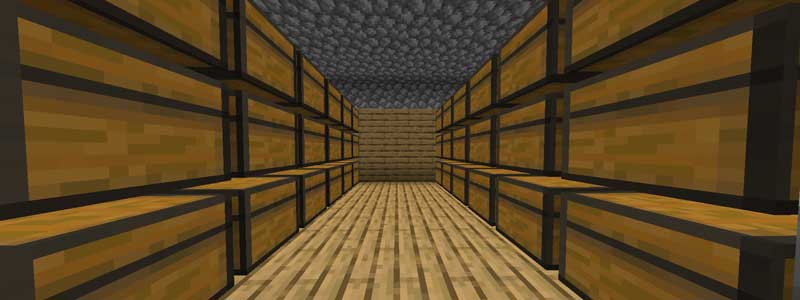 チェストを横向きにして出来るだけ多くのチェストを設置した形になります。少ない面積でたくさんのチェストが置けるので、たくさんチェストが欲しい人にオススメです。