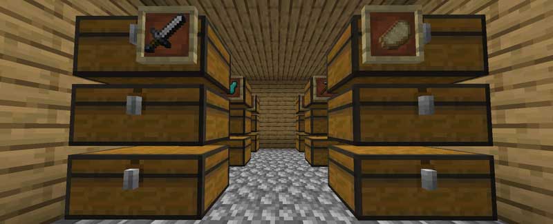 額縁というブロックを使えば、アイテムを飾ることができます。この機能を使って、チェストに何が入ってるかを分かりやすくできます。